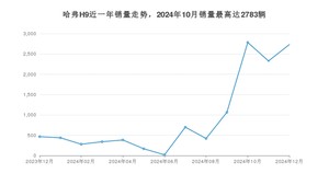 2024年12月,哈弗H9销量为2731辆,同比增长486.05%,环比增长17.31%。2023年12月-2024年12月份,哈弗H9销量为12117辆,同比增长83.67%。