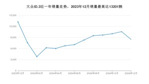 2024年12月,大众ID.3销量为8448辆,同比下降36%,环比下降20.09%。2023年12月-2024年12月份,大众ID.3销量为107017辆,同比增长36.3%。
