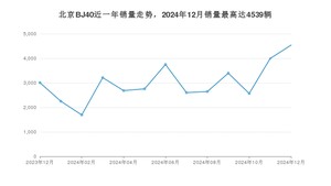 2024年12月,北京BJ40销量为4539辆,同比增长50.85%,环比增长13.67%。2023年12月-2024年12月份,北京BJ40销量为39089辆,同比增长56.88%。