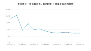 2024年12月,冒险家销量为726辆,同比下降60.37%,环比增长0.28%。2023年12月-2024年12月份,冒险家销量为13636辆,同比下降51.76%。
