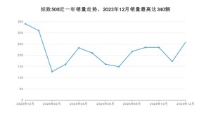 2024年12月,标致508销量为258辆,同比下降24.12%,环比增长50%。2023年12月-2024年12月份,标致508销量为2805辆,同比下降49.93%。