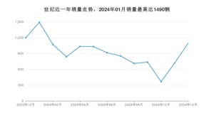2024年12月,世纪销量为1097辆,同比下降8.43%,环比增长52.57%。2023年12月-2024年12月份,世纪销量为12055辆,同比下降44.93%。