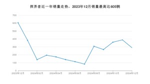 2024年12月,探界者销量为290辆,同比下降52.07%,环比下降25.45%。2023年12月-2024年12月份,探界者销量为3447辆,同比下降75.74%。