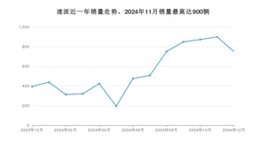 2024年12月,速派销量为750辆,同比增长89.87%,环比下降16.67%。2023年12月-2024年12月份,速派销量为7195辆,同比增长163.84%。