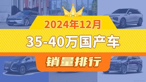 在2024年12月35-40万国产车销量排行榜单中,新进入榜单的车型有红旗HQ9、岚图追光,其中红旗HQ9的销量为141台,在榜单中位列第9名;岚图追光的销量为137台,在榜单中位列第10名。