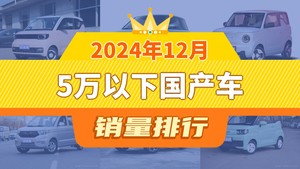 2024年12月5万以下国产车销量排行榜,熊猫mini屈居第三,五菱宏光V成最大黑马