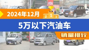 2024年12月5万以下汽油车销量排行榜,北京BJ30位居第二,第一名你绝对想不到