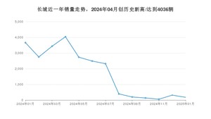 在国内市场上,长城,在2025年1月的销量为176辆,同比下降95.19%,环比下降44.13%。2024年01月-2025年01月份,长城累计销量为22688辆,较去年同期下降71.5%。