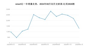 在国内市场上,smart,在2025年1月的销量为1282辆,同比增长31.08%,环比下降41.22%。2024年01月-2025年01月份,smart累计销量为24252辆,较去年同期下降30.46%。
