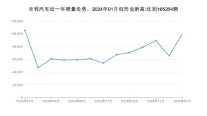 在国内市场上,吉利汽车,在2025年1月的销量为98907辆,同比下降6.03%,环比增长51.49%。2024年01月-2025年01月份,吉利汽车累计销量为916860辆,较去年同期增长4.19%。