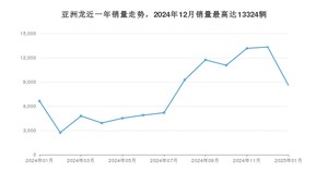 2025年1月,亚洲龙销量为8573辆,同比增长29.21%,环比下降35.66%。2024年01月-2025年01月份,亚洲龙销量为99802辆,同比下降2.05%。