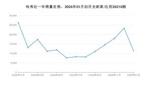 2025年1月,全国汽车总销量为1182785辆,哈弗品牌的销量占比为0.95%,在所有汽车企业销量排名中位列第23名。2024年01月-2025年01月份,全国汽车总销量为17737318辆,哈弗品牌的销量占比为1.03%,在所有汽车企业销量排名中位列第21名。