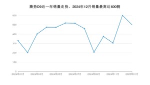 2025年1月,腾势D9销量为501辆,同比增长51.82%,环比下降16.5%。2024年01月-2025年01月份,腾势D9销量为5363辆,同比下降27.18%。