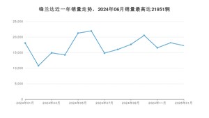 2025年1月,锋兰达销量为17242辆,同比下降4.56%,环比下降4.98%。2024年01月-2025年01月份,锋兰达销量为222089辆,同比增长10.36%。