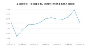 2025年1月,皇冠陆放销量为4128辆,同比下降4.64%,环比下降40.05%。2024年01月-2025年01月份,皇冠陆放销量为56800辆,同比增长8.05%。