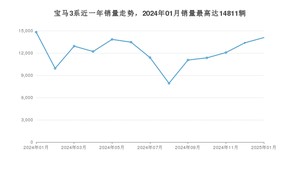 2025年1月,宝马3系销量为14075辆,同比下降4.97%,环比增长5.23%。2024年01月-2025年01月份,宝马3系销量为158377辆,同比增长7.41%。