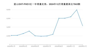 2025年1月,蓝山DHT-PHEV销量为4266辆,同比增长104.6%,环比下降46.43%。2024年01月-2025年01月份,蓝山DHT-PHEV销量为48682辆,同比增长47.42%。