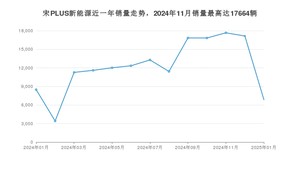 2025年1月,宋PLUS新能源销量为6881辆,同比下降18.86%,环比下降59.87%。2024年01月-2025年01月份,宋PLUS新能源销量为159166辆,同比下降29.72%。