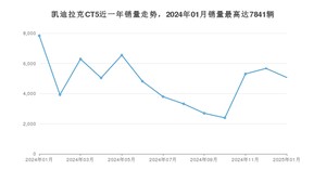 2025年1月,凯迪拉克CT5销量为5069辆,同比下降35.35%,环比下降10.57%。2024年01月-2025年01月份,凯迪拉克CT5销量为62702辆,同比下降32.06%。