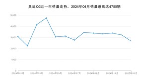 2025年1月,奥迪Q3销量为2670辆,同比下降13.26%,环比下降17.21%。2024年01月-2025年01月份,奥迪Q3销量为42632辆,同比下降22.61%。