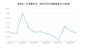 2025年1月,威朗销量为3530辆,同比下降0.14%,环比下降19.7%。2024年01月-2025年01月份,威朗销量为53650辆,同比下降53.89%。