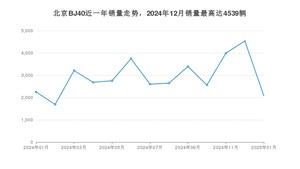 2025年1月,北京BJ40销量为2081辆,同比下降7.51%,环比下降54.15%。2024年01月-2025年01月份,北京BJ40销量为38161辆,同比增长66.69%。