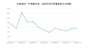 2025年1月,红旗H9销量为554辆,同比下降26.43%,环比增长0.73%。2024年01月-2025年01月份,红旗H9销量为8317辆,同比下降48.82%。