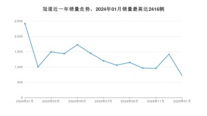 2025年1月,冠道销量为715辆,同比下降70.41%,环比下降49.51%。2024年01月-2025年01月份,冠道销量为16987辆,同比下降49.81%。
