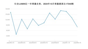 2025年1月,长安LUMIN销量为7861辆,同比下降50.99%,环比下降39.66%。2024年01月-2025年01月份,长安LUMIN销量为153003辆,同比增长0.13%。