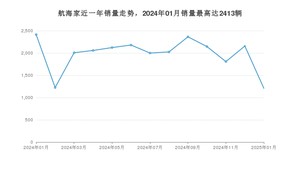 2025年1月,航海家销量为1208辆,同比下降49.94%,环比下降43.97%。2024年01月-2025年01月份,航海家销量为25704辆,同比下降13.81%。
