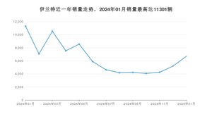 2025年1月,伊兰特销量为6707辆,同比下降40.65%,环比增长28.98%。2024年01月-2025年01月份,伊兰特销量为84186辆,同比下降29.83%。