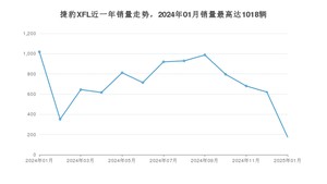 2025年1月,捷豹XFL销量为175辆,同比下降82.81%,环比下降71.77%。2024年01月-2025年01月份,捷豹XFL销量为9260辆,同比下降24.93%。