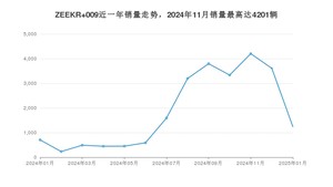 2025年1月,ZEEKR 009销量为1240辆,同比增长76.14%,环比下降65.64%。2024年01月-2025年01月份,ZEEKR 009销量为23871辆,同比增长16.27%。