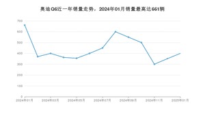 2025年1月,奥迪Q6销量为400辆,同比下降39.49%,环比增长13.96%。2024年01月-2025年01月份,奥迪Q6销量为5700辆,同比增长9.15%。