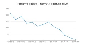 2025年1月,Polo销量为64辆,同比下降96.97%,环比下降65.78%。2024年01月-2025年01月份,Polo销量为14875辆,同比下降63.01%。