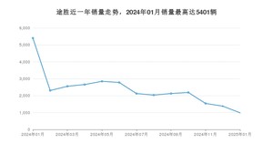 2025年1月,途胜销量为986辆,同比下降81.74%,环比下降28.5%。2024年01月-2025年01月份,途胜销量为30925辆,同比下降47.05%。
