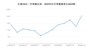 2025年1月,红旗H6销量为2042辆,同比增长49.27%,环比增长62.32%。2024年01月-2025年01月份,红旗H6销量为15519辆,同比增长44.7%。