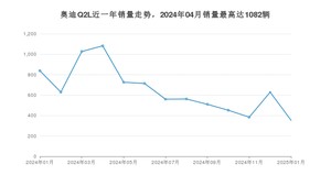 2025年1月,奥迪Q2L销量为353辆,同比下降57.93%,环比下降43.88%。2024年01月-2025年01月份,奥迪Q2L销量为8467辆,同比下降56.15%。