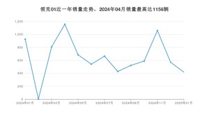 2025年1月,领克01销量为419辆,同比下降54.75%,环比下降26.49%。2024年01月-2025年01月份,领克01销量为8372辆,同比下降47.51%。