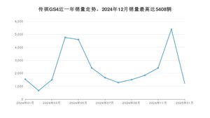 2025年1月,传祺GS4销量为1220辆,同比下降20.68%,环比下降77.44%。2024年01月-2025年01月份,传祺GS4销量为30827辆,同比增长8.93%。