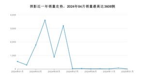 2025年1月,探影销量为1辆,同比下降99.82%,环比下降98.59%。2024年01月-2025年01月份,探影销量为10466辆,同比下降37.02%。