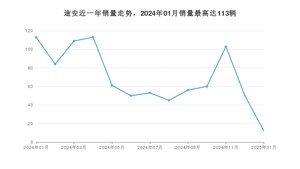 2025年1月,途安销量为12辆,同比下降89.38%,环比下降76%。2024年01月-2025年01月份,途安销量为909辆,同比下降12.93%。