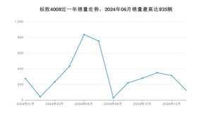 2025年1月,标致4008销量为121辆,同比下降55.84%,环比下降61.22%。2024年01月-2025年01月份,标致4008销量为3875辆,同比下降47.21%。