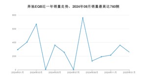 2025年1月,奔驰EQB销量为259辆,同比下降12.2%,环比下降28.25%。2024年01月-2025年01月份,奔驰EQB销量为3904辆,同比下降43.92%。