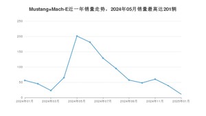 2025年1月,Mustang Mach-E销量为11辆,同比下降80.36%,环比下降71.79%。2024年01月-2025年01月份,Mustang Mach-E销量为1010辆,同比下降68.09%。