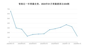 2025年1月,智跑销量为121辆,同比下降81.5%,环比下降63%。2024年01月-2025年01月份,智跑销量为3533辆,同比下降69.39%。