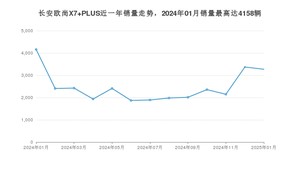 2025年1月,长安欧尚X7 PLUS销量为3270辆,同比下降21.36%,环比下降3%。2024年01月-2025年01月份,长安欧尚X7 PLUS销量为32236辆,同比下降23.46%。