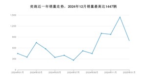 2025年1月,奕跑销量为798辆,同比增长78.92%,环比下降44.85%。2024年01月-2025年01月份,奕跑销量为8298辆,同比下降9.16%。