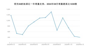 2025年1月,领克06新能源销量为299辆,同比下降79.62%,环比下降15.06%。2024年01月-2025年01月份,领克06新能源销量为12258辆,同比增长9.5%。