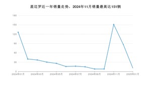 2025年1月,星迈罗销量为11辆,同比下降91.27%,环比下降87.36%。2024年01月-2025年01月份,星迈罗销量为572辆,同比下降90.52%。